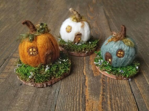 Pumpkin House Needle Felt Pumpkins Fall Pumpkin Decoration Felt Pumpkins Halloween Felt Crafts Fall Felt Crafts