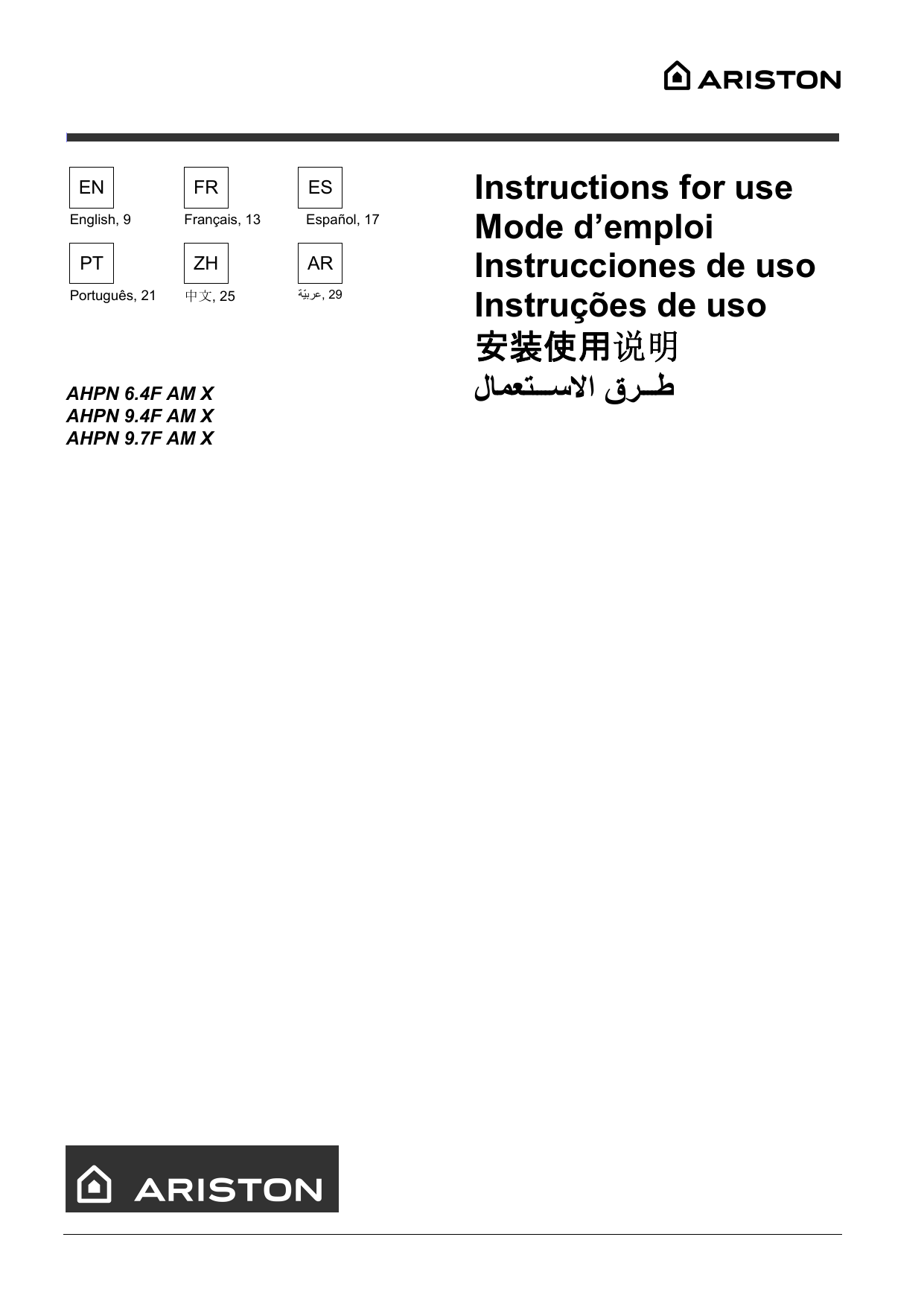 Ariston Ahpn 9 7f Am X Ahpn 9 4f Am X Ahpn 6 4f Am X User Guide Manualzz