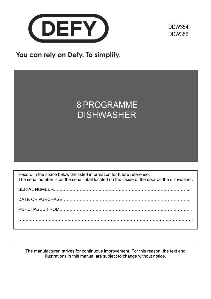Defy Cornerwash Dishwasher Ddw 356 Owner Manual Manualzz