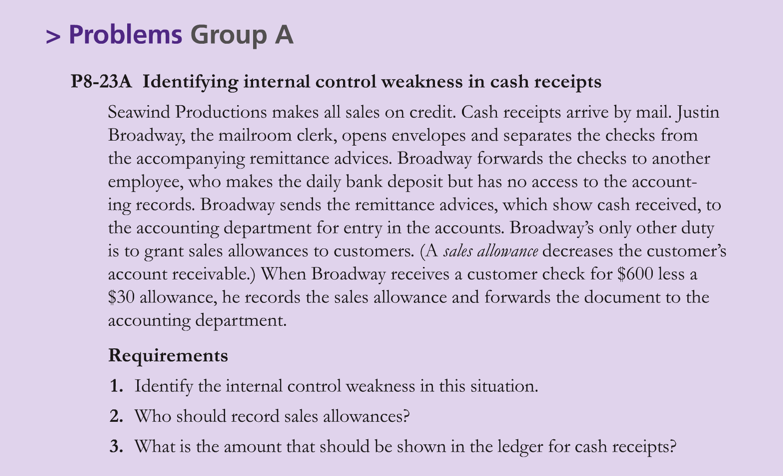 Determine Whether Each Cash Receipts Procedure Is An Internal Control Strength Or Weakness Strength Or Weakness Homeworklib