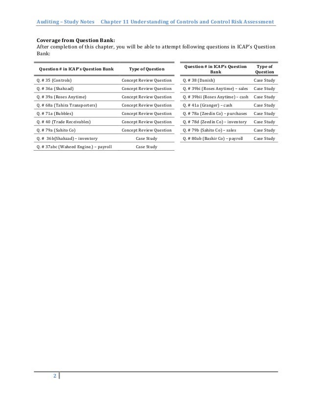 Understanding Of Internal Control And Control Risk Assessment