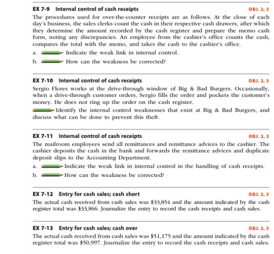 Solved Ex 7 9 Internal Control Of Cash Receipts The Chegg Com