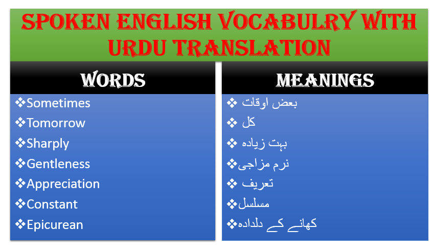 Lecture 01 Spoken English Vocabulary With Urdu Translation ذخیرہ الفاظ اردو ترجمہ کے ساتھ Steemit