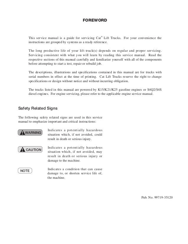 Caterpillar Cat Dp35an Forklift Lift Trucks Service Repair Manual Sn