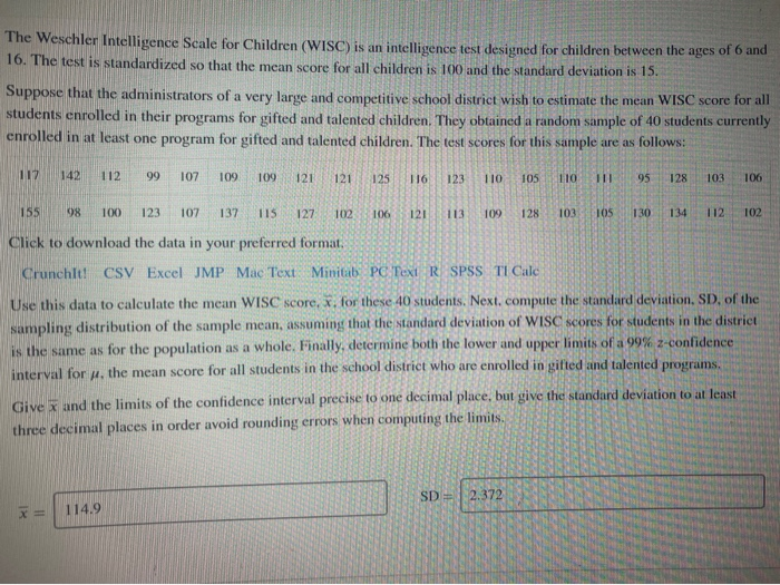 Solved The Weschler Intelligence Scale For Children Wisc Chegg Com