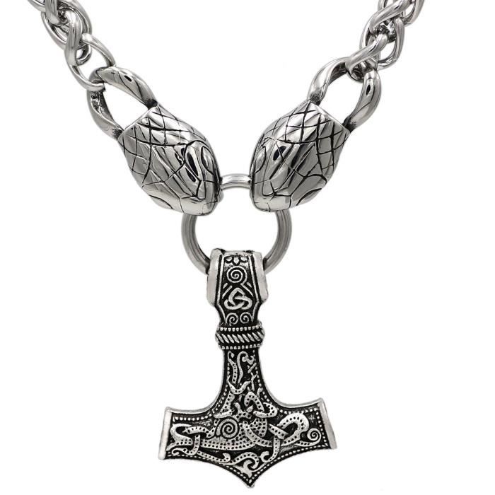 Collier Avec Pendentif Marteau De Thor Et Symbole Viking Scandinave De La Triquetra Chaine Avec Tetes De Serpent En 3d Acier Achat Vente Sautoir Et Collier Collier Avec Pendentif Ma795