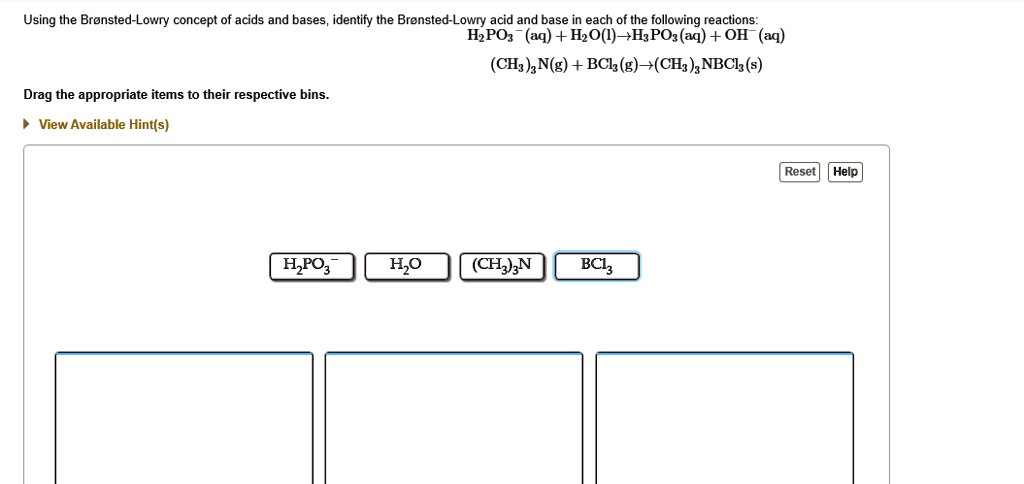Solved Using The Bronsted Lowry Concept Of Acids And Bases Identify The Bronsted Lowry Acid And Base In Each Of The Following Reactions Hzpoz Aq H2o L H Poz Aq Oh Aq Ch Zn G Bcl G Chz 3nbclz