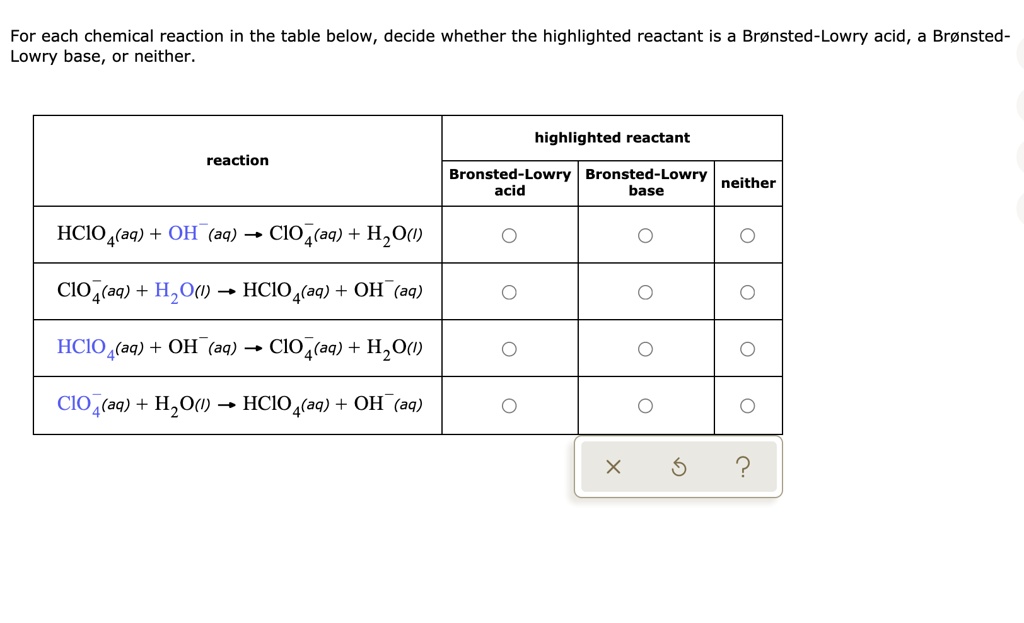 For Each Reaction Identify The Bronsted Lowry Acid The Bro Clutch Prep