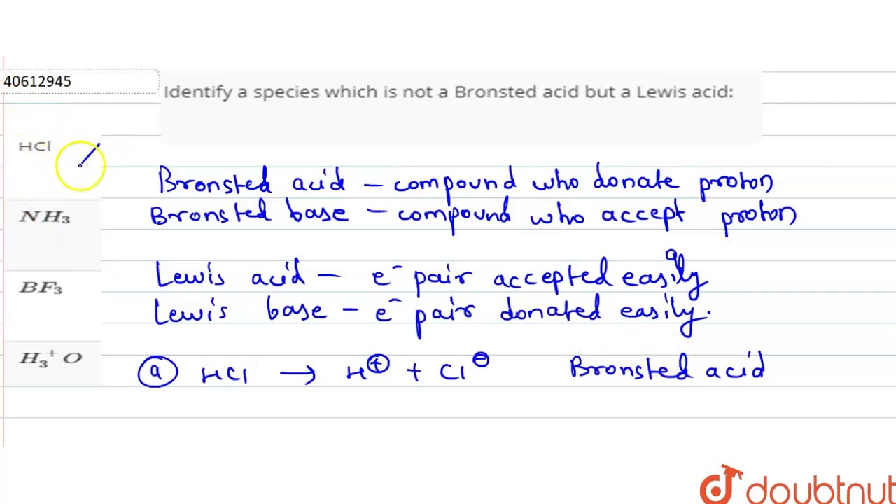 Identify A Species Which Is Not A Bronsted Acid But A Lewis Acid Youtube