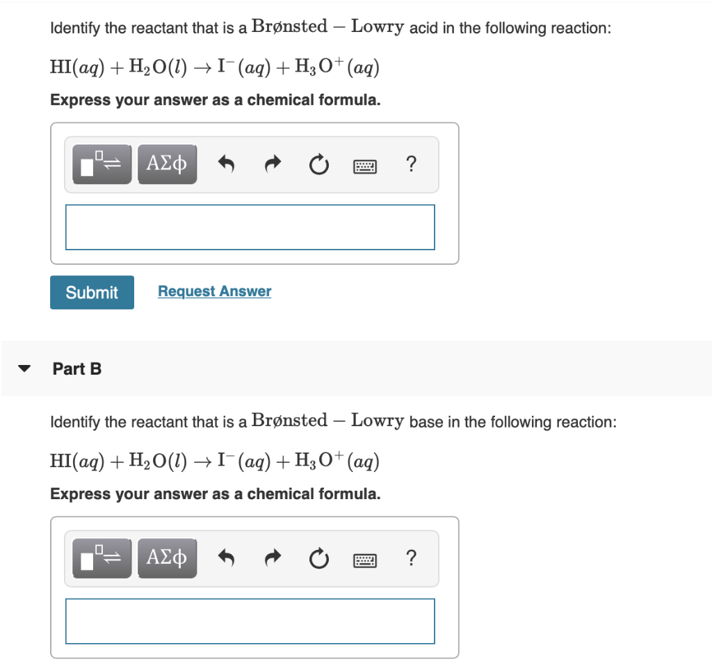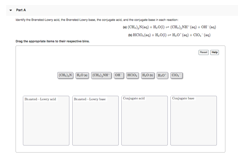 Solved Part A Identify The Bronsted Lowry Acid The Chegg Com