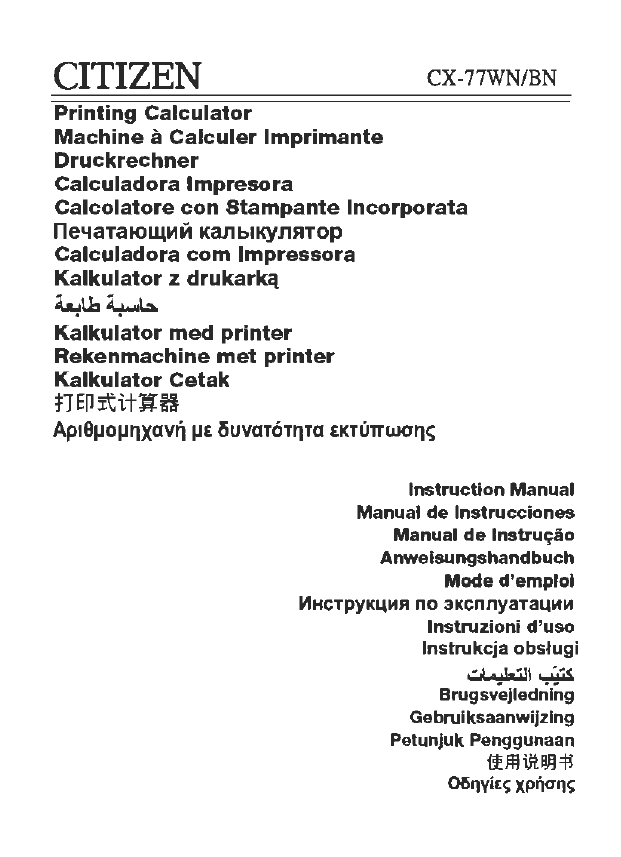 Citizen Cx 77bn Calculator Manuel Utilisateur Manualzz