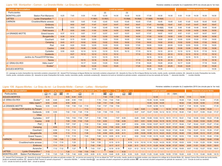 Ligne 106 Montpellier Grande Motte