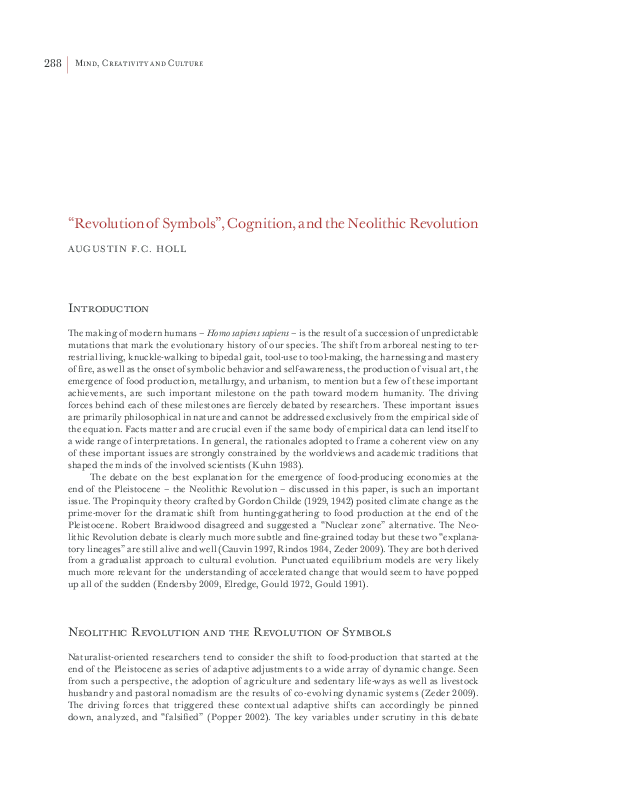 Pdf Revolution Of Symbols Cognition And The Neolithic Revolution In The Genesis Of Creativity And The Origin Of The Human Mind Edited By B Putova And V Soukup Pp 288