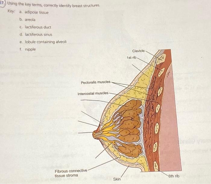 Answers is the place to go to get the answers you need and to ask the questions you want. Lactiferous sinus e lobule containing alveoli 1 nipple Clavice Pectoralismusdes Intercostal muscles Fibrous connective- tissue stroma thri 28. Using the key terms correctly identify breast structures Key.